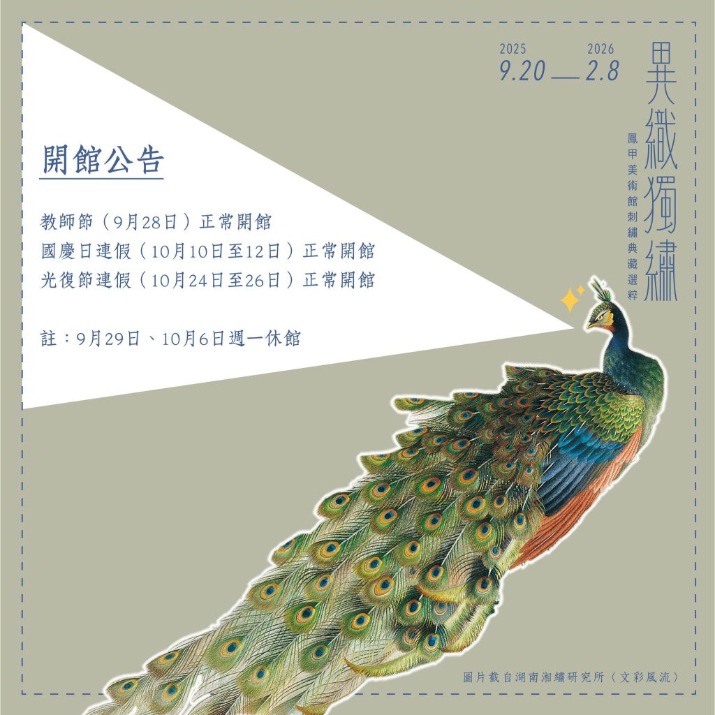 Posted by honggah.zhezhi 2025.09.26 1 min read 10月份開館公告 公告 Posted by honggah.zhezhi 2025.09.01 1 min read 9/01-9/19 休館公告 公告 Posted by honggah.zhezhi 2025.08.07 1 min read 鳳甲美術館最新職缺 公告 Posted by honggah.zhezhi 2025.06.22 1 min read 6/23-7/04 休館公告 公告 Posted by honggah.zhezhi 2025.05.21 1 min read 5/31休館公告 公告 Posted by honggah.zhezhi 2025.05.11 2 min read 518博物館日 公告 Posted by honggah.zhezhi 2025.04.15 1 min read 4/15-4/25 休館公告 公告 Posted by honggah.zhezhi 2025.01.14 1 min read 春節休館公告 公告 Posted by honggah.jessica 2024.10.30 1 min read 10/31 休館公告 公告 Posted by honggahmuseum 2024.10.01 1 min read 10/2-10/3 休館公告 公告 Posted by honggahmuseum 2024.09.07 2 min read 9/9-9/20 休館公告 公告 Posted by honggahmuseum 2024.07.30 1 min read 【公告】八月夜間開館時段 公告